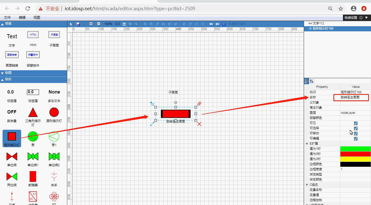 思普云设备组态子画面跳转使用教程说明,另一方面顺利获得动画、曲线等方式将现场数据以动态体现在图形界面,操作图形界面即可控制现场设备。